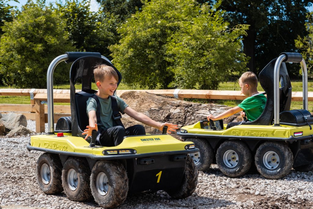 The result is Off Road Adventure – a hybrid driving experience featuring eight Adventure-Trukz® and five Crazi-Bugz®, designed to give young guests the thrill of independent driving in field-style off-roaders while parents relax nearby. Located beside the Jaguar Café, the activity is easily accessible and offers a convenient vantage point for families.